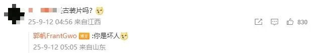 对此,有网友评论戏称:“还是纪录片吗?”郭帆回复:“先争取不是古装片吧。”